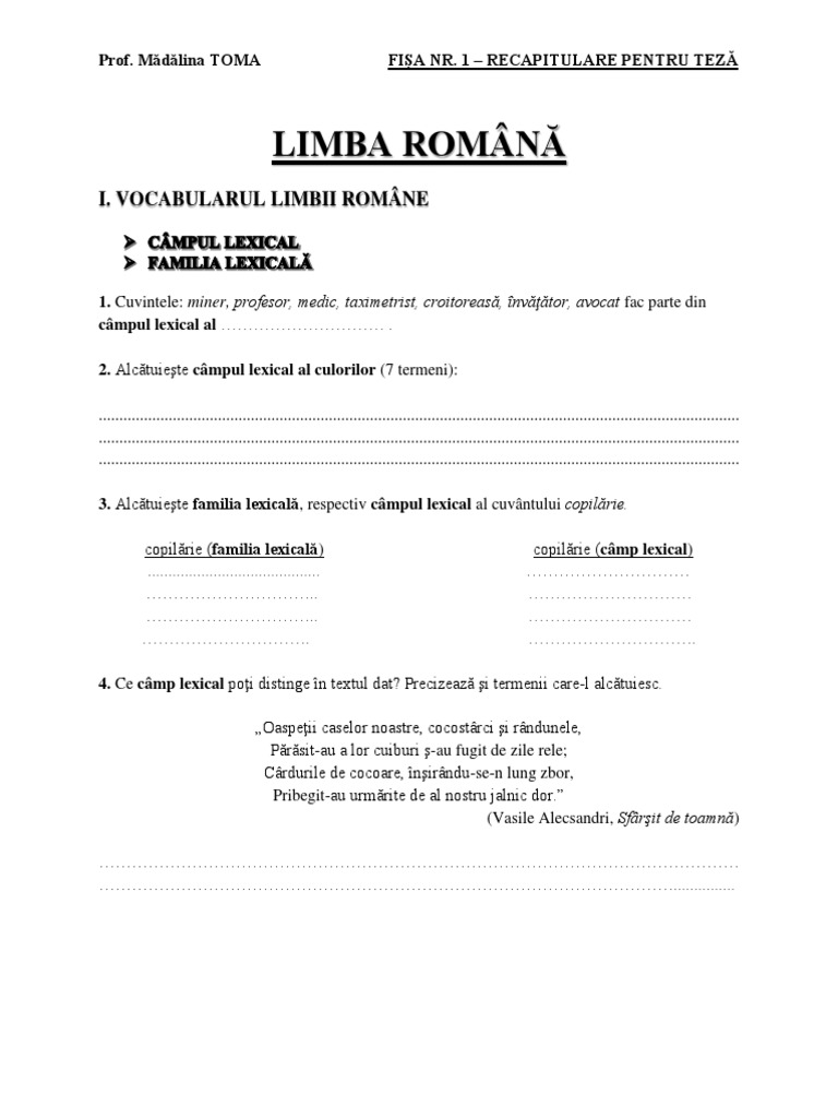 Familia De Cuvinte Familia Lexicala Vocabularul Limbii Romane