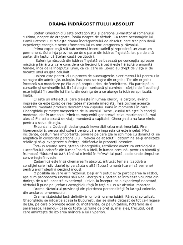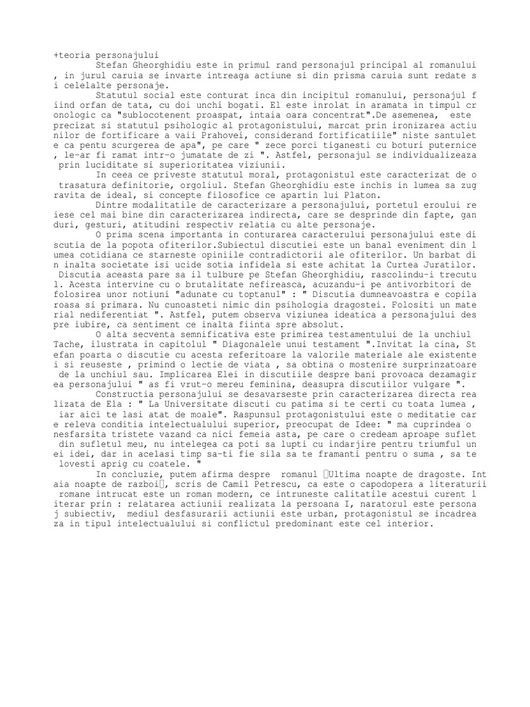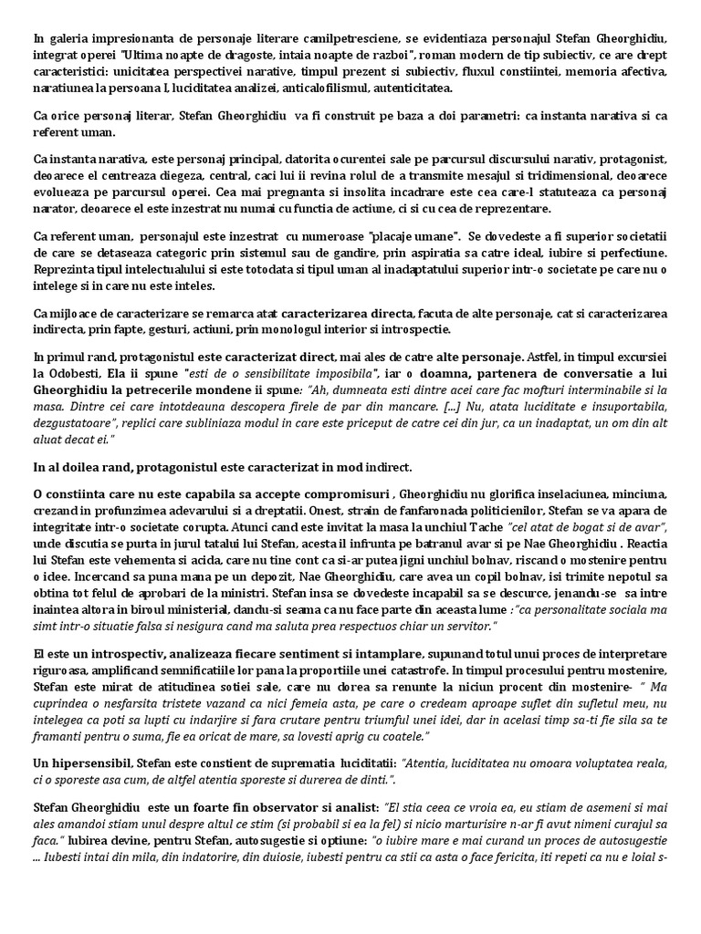 Doc Caracterizare Stefan Gheorghidiu Ultima Noapte De Dragoste Intaia Noapte De Razboi De Camil Petrescu Elena Grigorescu Academia Edu