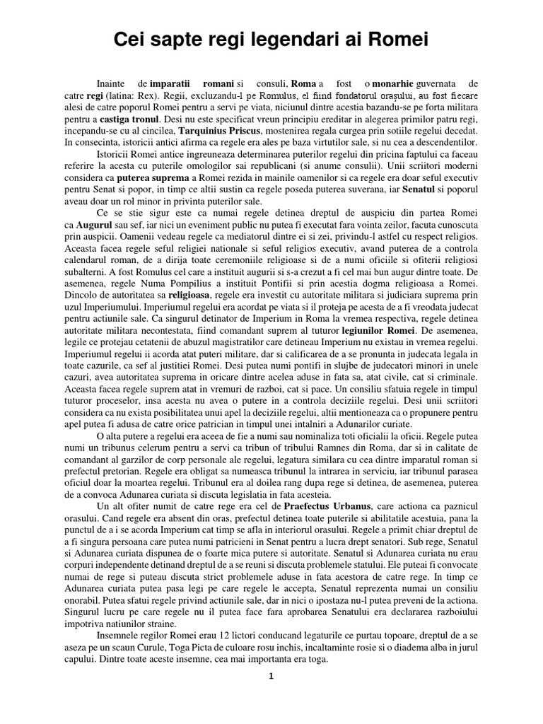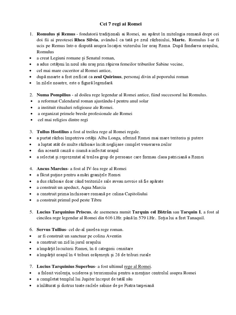 Regii Romei Antice De La Romulus La Tarquinius Superbus Tocilar Ro