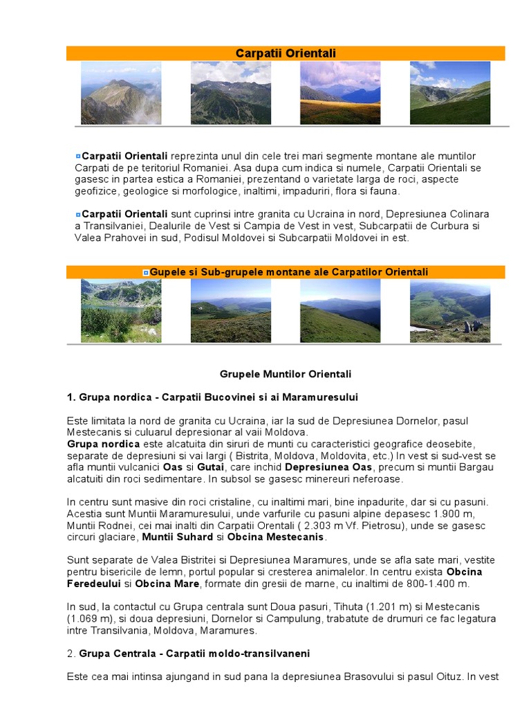 Carpatii Orientali Descriere