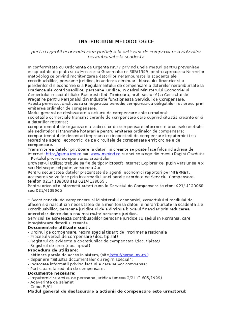 Procedura De Compensare A Creanțelor și Datoriilor Comerciale