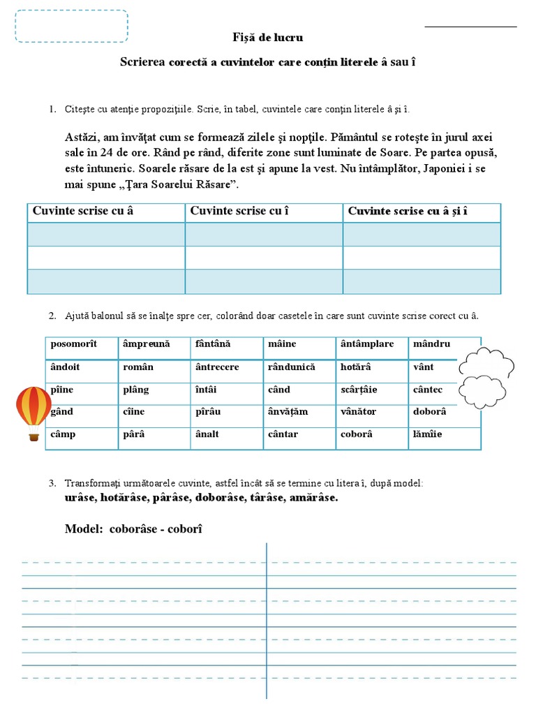 Fisă De Lucru Scrierea Corecta Cu A Si I