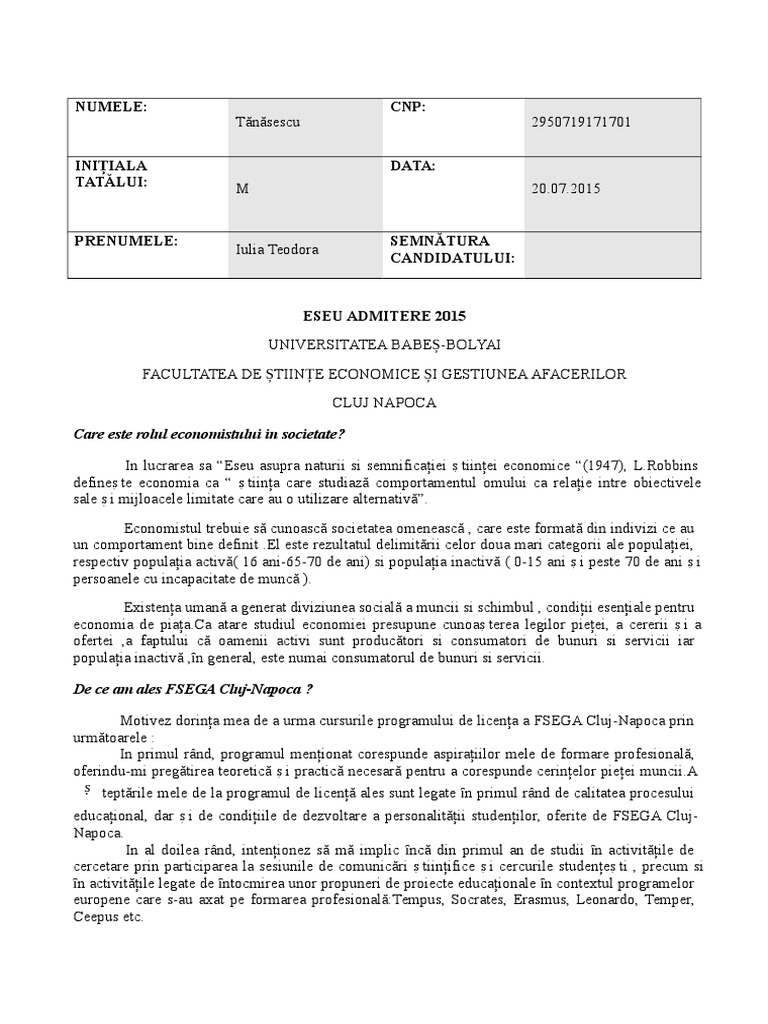 Anexa 3 Eseu Admitere Fsega 2019 Rom Pdf Numele Ursachi Ini U021aiala Tat U0102lui V Prenumele Doina Cnp Data 2016012000530 17 07 2019 Semn U0102tura Candidatului Course Hero
