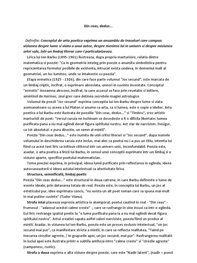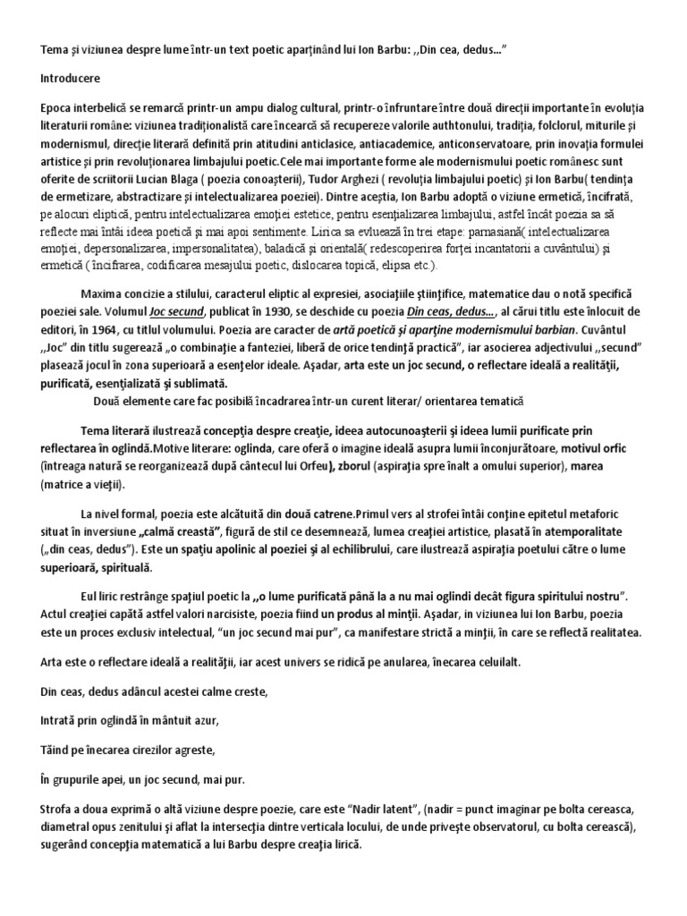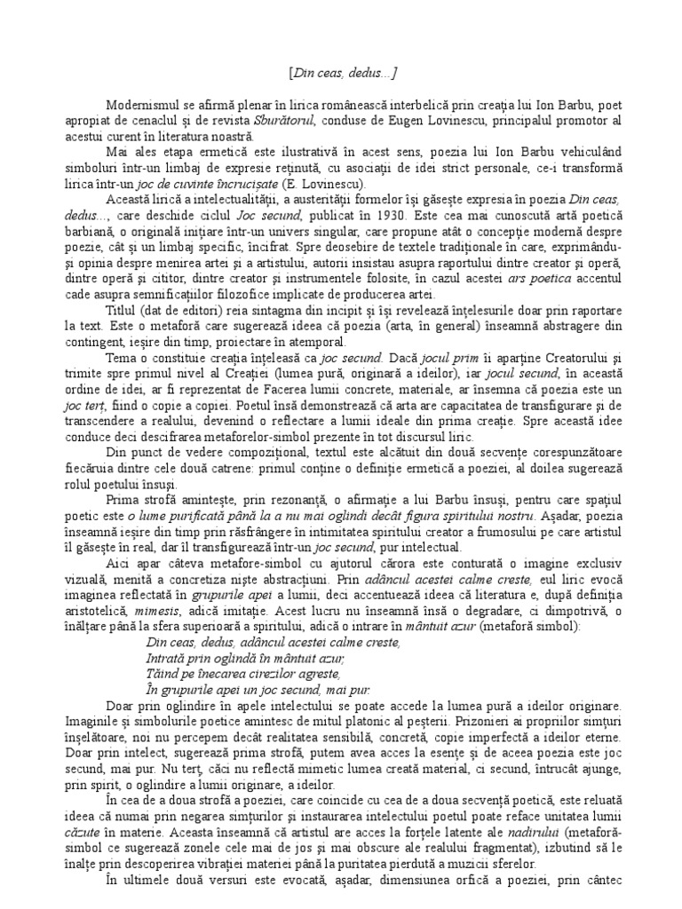Joc Secund Ion Barbu Romanian Language And Literature Studocu