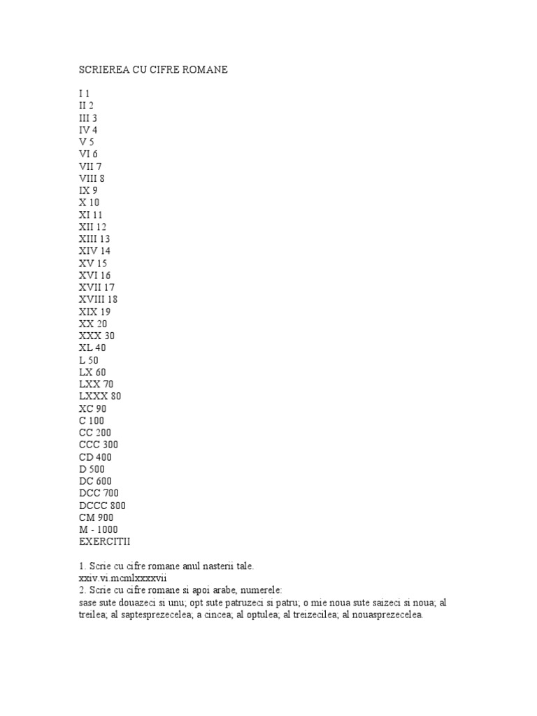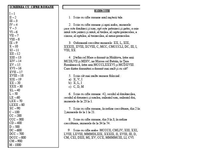 Matematică Cifrele Romane Materiale Didactice Ccd Ciclul Curri