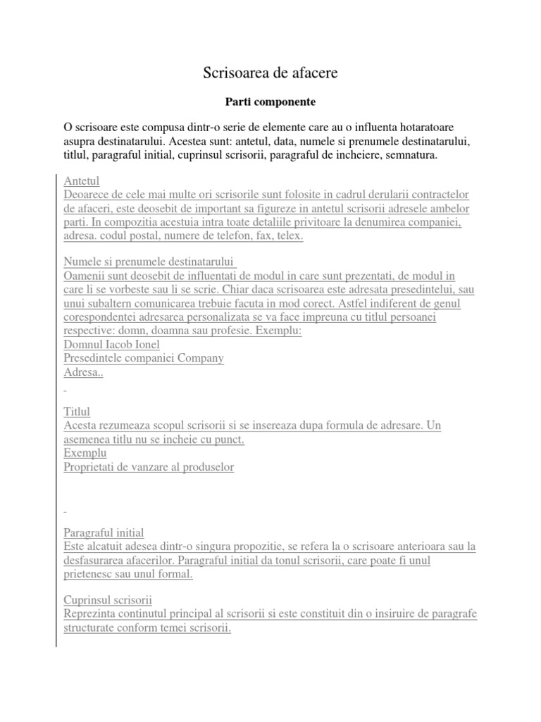 Elementele Unei Scrisori Oficiale In Engleza