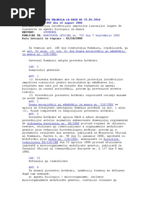 Hotărarea Nr 1092 2006 Privind Protecția Lucrătorilor Impotriva Riscurilor Legate De Expunerea La Agenți Biologici In Muncă Lege5 Ro