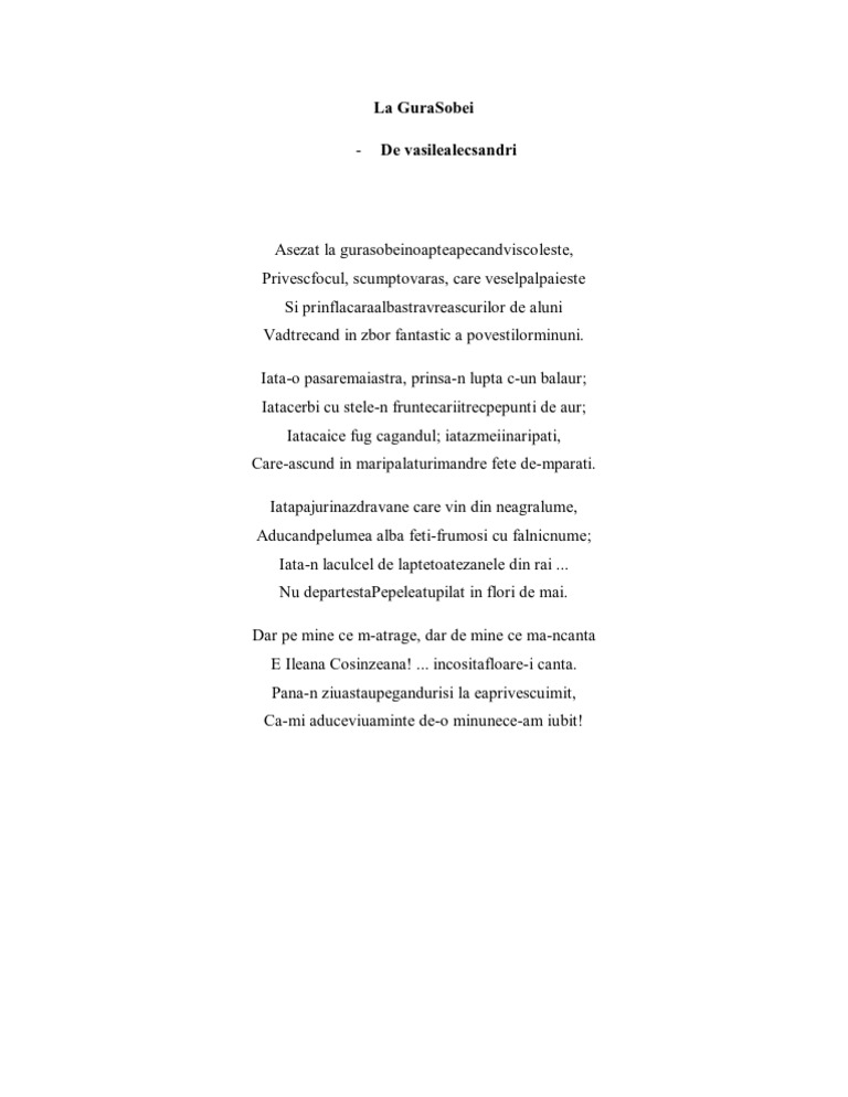 La Gura Sobei De Vasile Alecsandri Poezii Romanesti Youtube