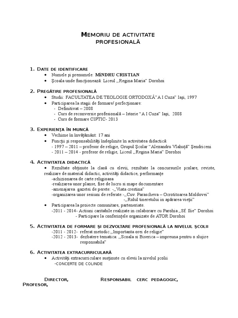 Memoriu De Activitate Al Pr Paroh Mircea Uță Pe Ultimii Cinci Ani