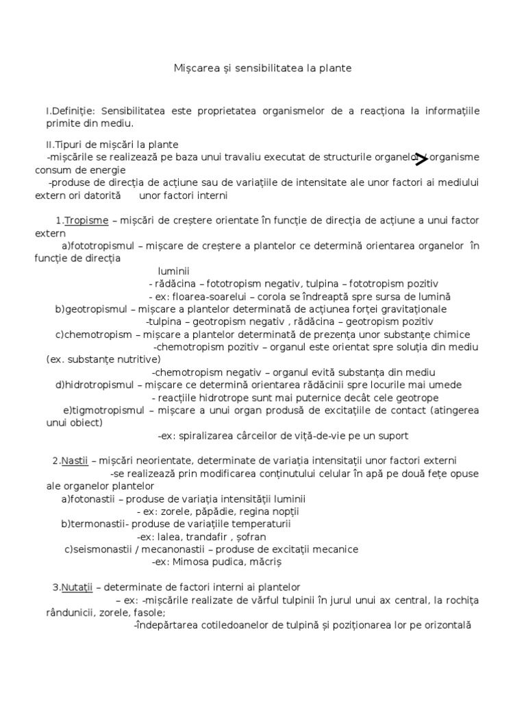 Referat Miscarea Si Sensibilitatea Plantelor Biologie 12312