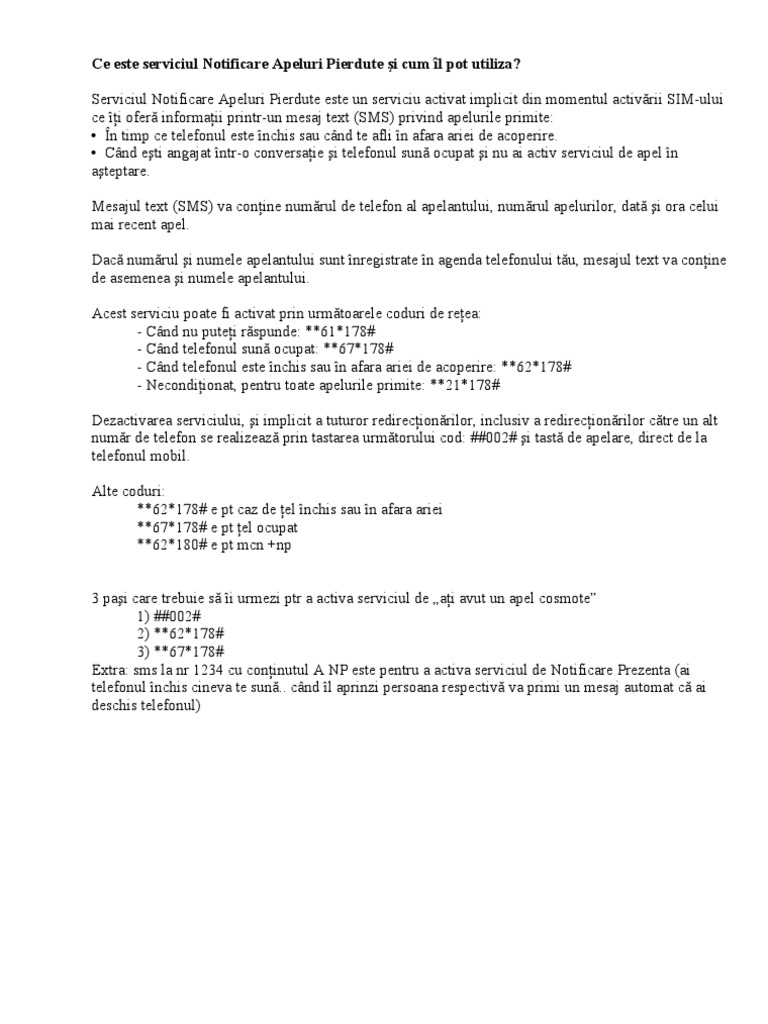 Apelant clir notificare apeluri pierdute redirectionarea apelurilor apel in asteptare apel retinut pe linie restrictionare apeluri 2 1 3 dupa consumarea beneficiilor incluse in abonament se aplica urmatoarele tarife standard. Ce este serviciul notificare apeluri pierdute si cum il pot utiliza serviciul notificare apeluri pierdute este un serviciu activat implicit din momentul activarii sim ului ce iti ofera informatii printr un mesaj text sms privind apelurile primite in timp ce telefonul este inchis sau cand te afli in afara ariei de acoperire. 50 eur da nu. La un pret de 3.