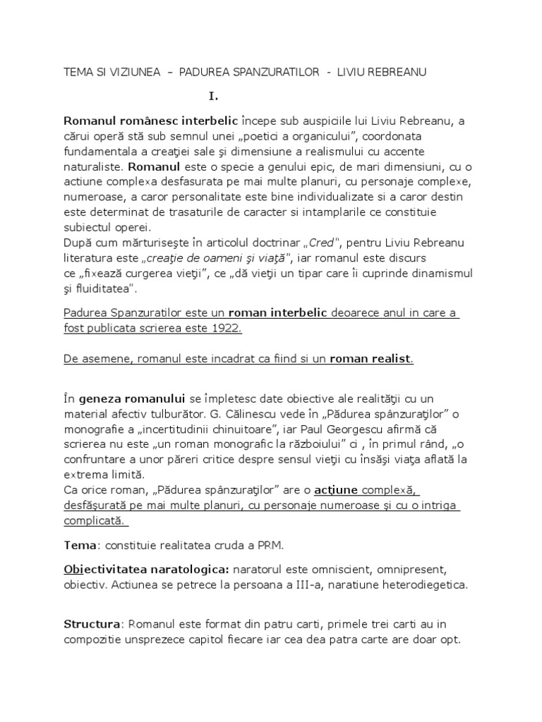 Tema Si Viziunea Padurea Spanzuratilor L R