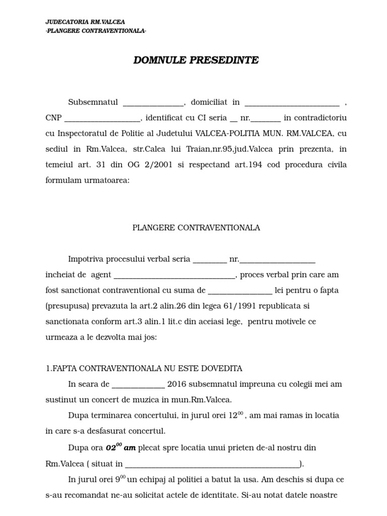 Model Plangere Contraventionala Lipsa Vinovatiei Lipsa Obiectiuni