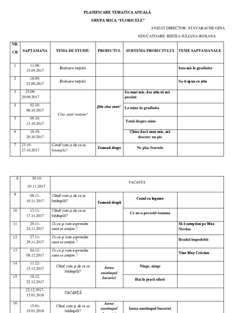 Free Clasa Pregătitoare Model De Planificare Anuală Detaliată