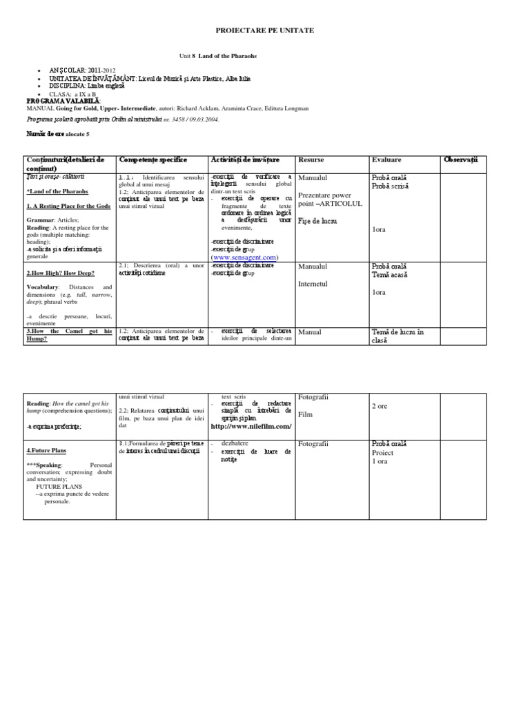 Modele Proiecte Pe Unitati De Invatare