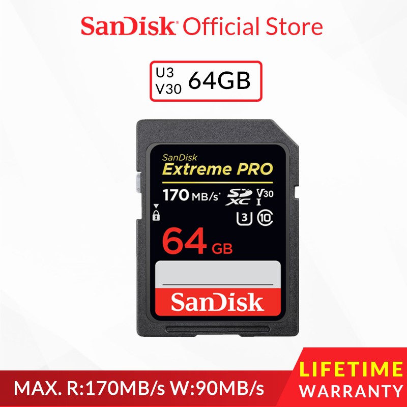 Sandisk Extreme Pro Sd Memory Card Sdxc 64gb Max R 170mb S W 90mb S U3 V30 Shopee Malaysia