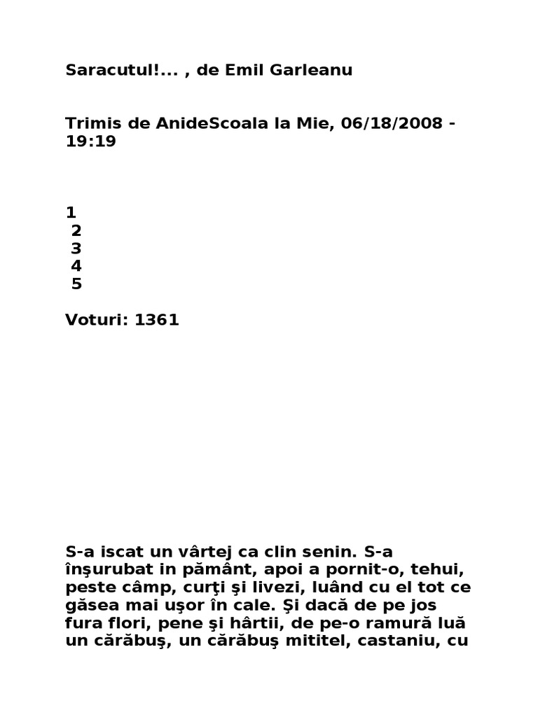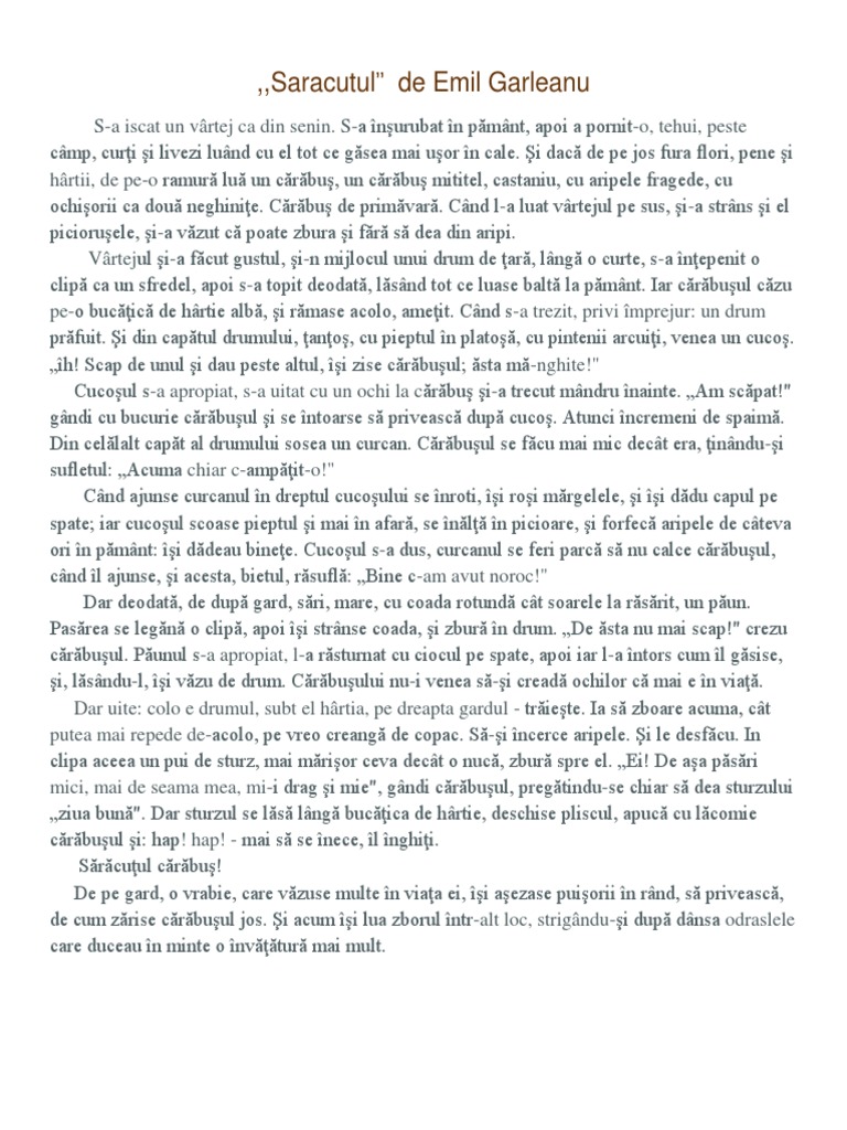 Saracutul De Emil Garleanu Anideșcoală Ro