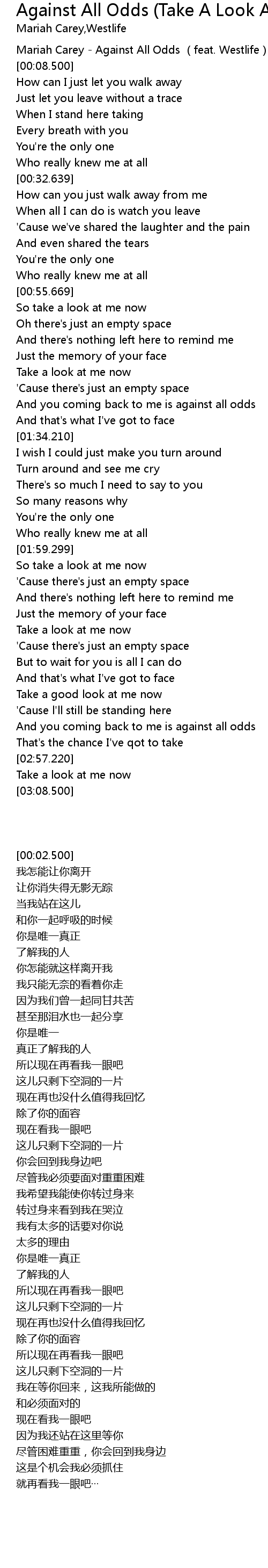 Against All Odds Take A Look At Me Now Album Version Featuring Westlife Lyrics Follow Lyrics