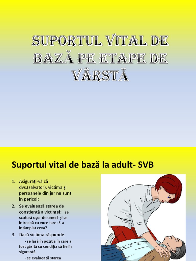 Mii de oameni mor sau sufera anual datorită necunoaşterii măsurilor de prevenire a situaţiilor de urgenţă sau a modalităţilor de aplicare ale acestora precum şi a lipsei cunoştinţelor necesare pentru a gestiona problemele de sănătate şi comportamentul riscant sau pentru ca în situaţii de urgenţă nu au putut. Manevre care se fac cu mainile goale salvatoare de viata. Suportul vital de baza svb lantul supravietuirii lantul supravietuirii este alcatuit din verigile de baza necesare pentru a salva cel mai mare numar posibil de pacienti aflati in stop cardio respirator scr in faza prespitaliceasca. Toţi factorii care interferă cu reuşita resuscitării sunt cuprinşi în noţiunea de lanţul supravieţuirii.