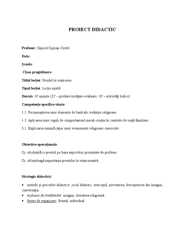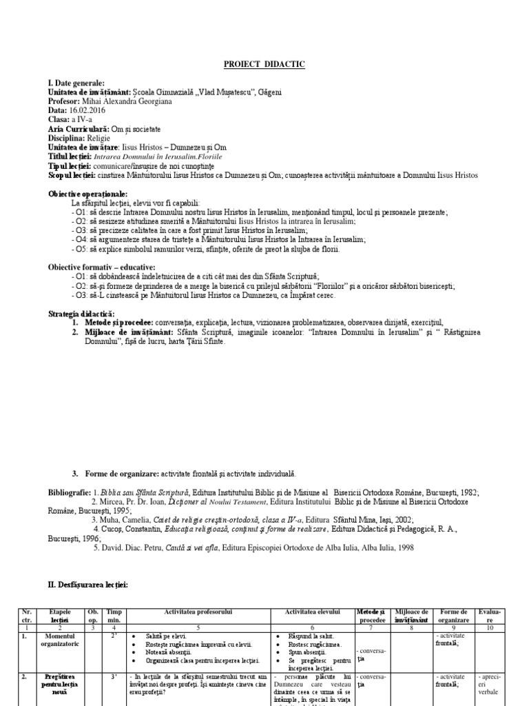 Intrarea Domnului In Ierusalim Proiect De Lectie Docx