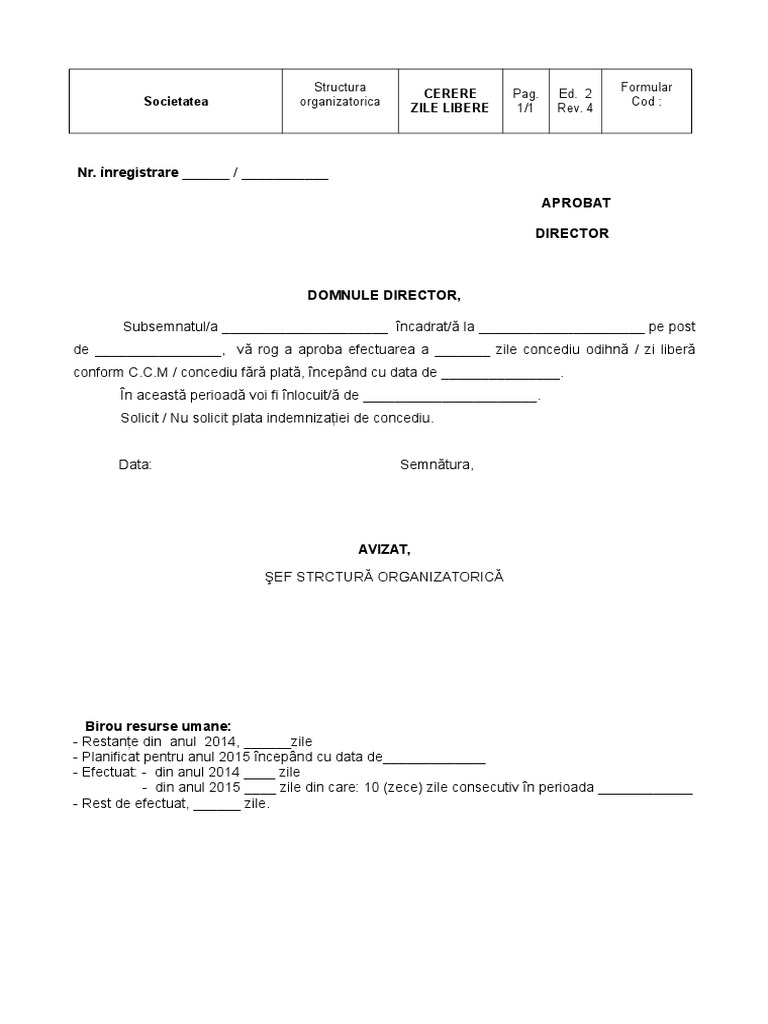 Model Cerere Zile Libere Plătite Pentru Evenimente Deosebite In Familie